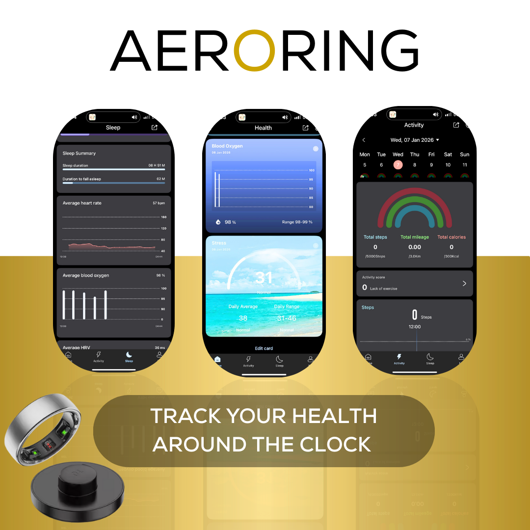 AeroRing brings everyday insights to your finger, designed for comfort, built for routine, and ready when you are. Track key metrics, stay consistent, and keep momentum without the bulk.